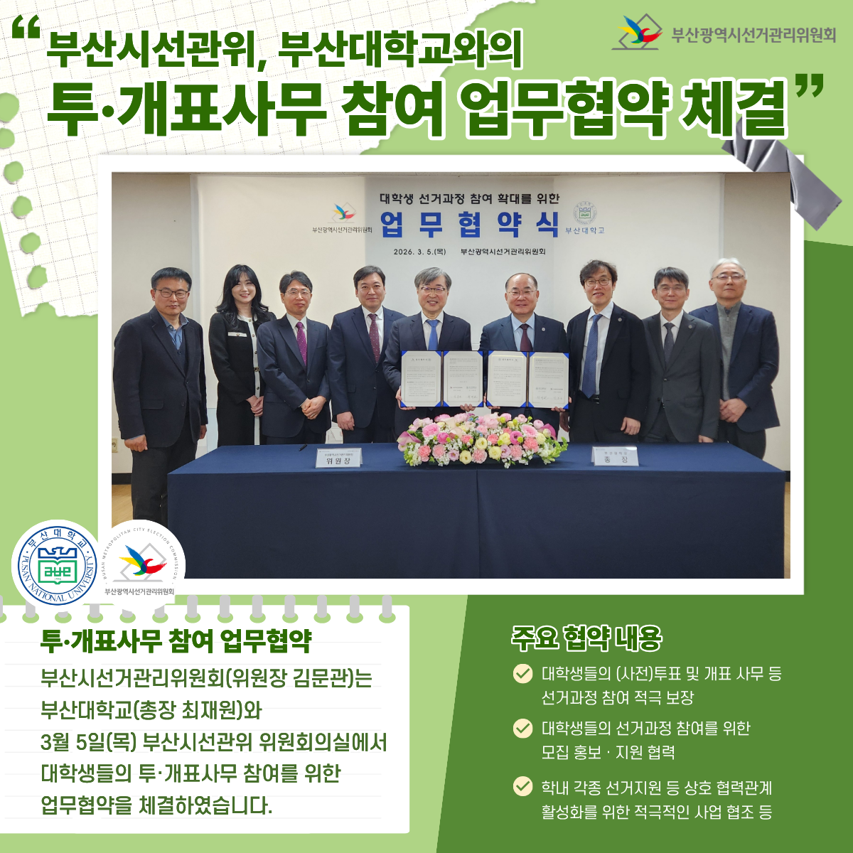 부산시선관위, 부산대학교와의 투·개표사무 참여 업무협약 체결